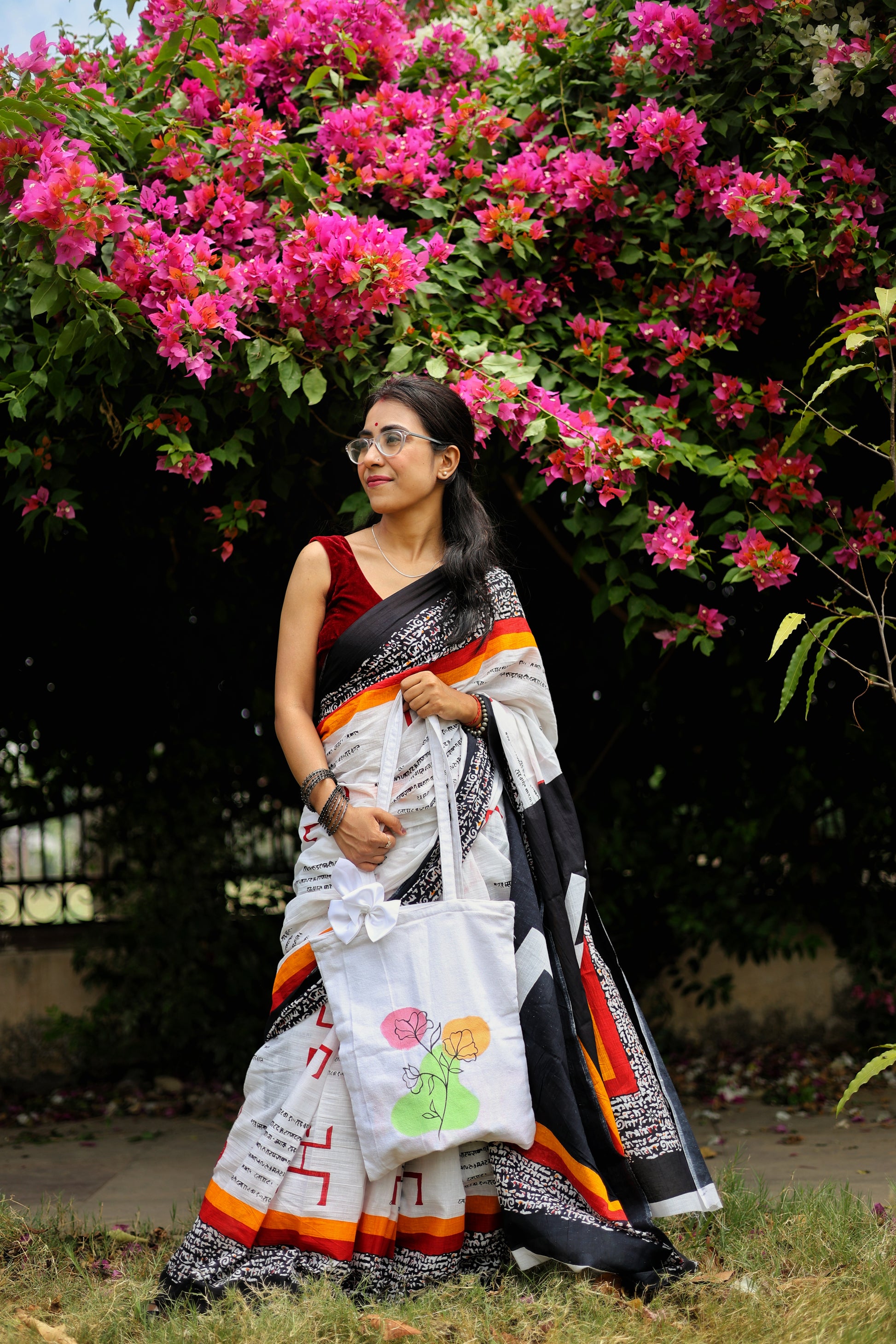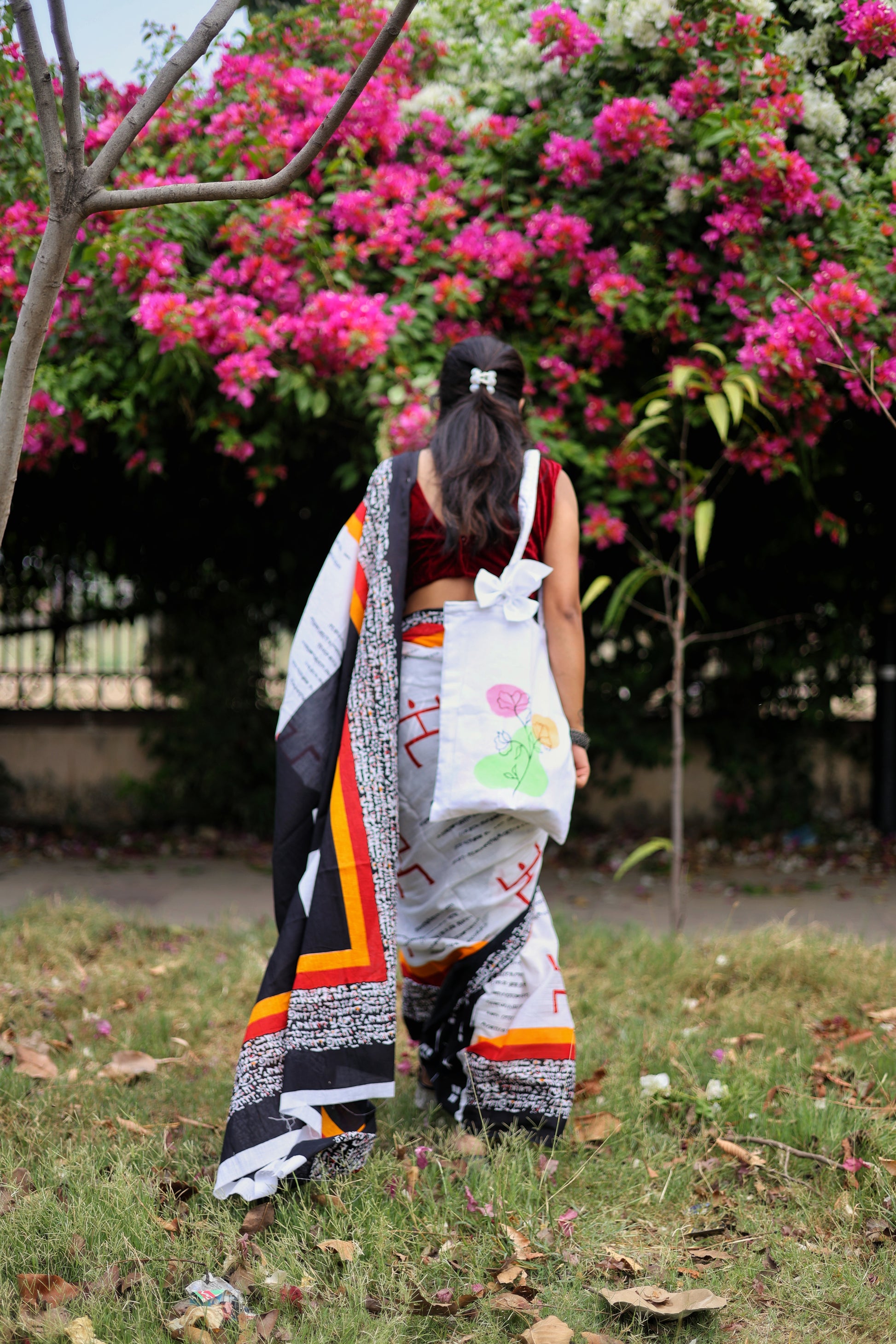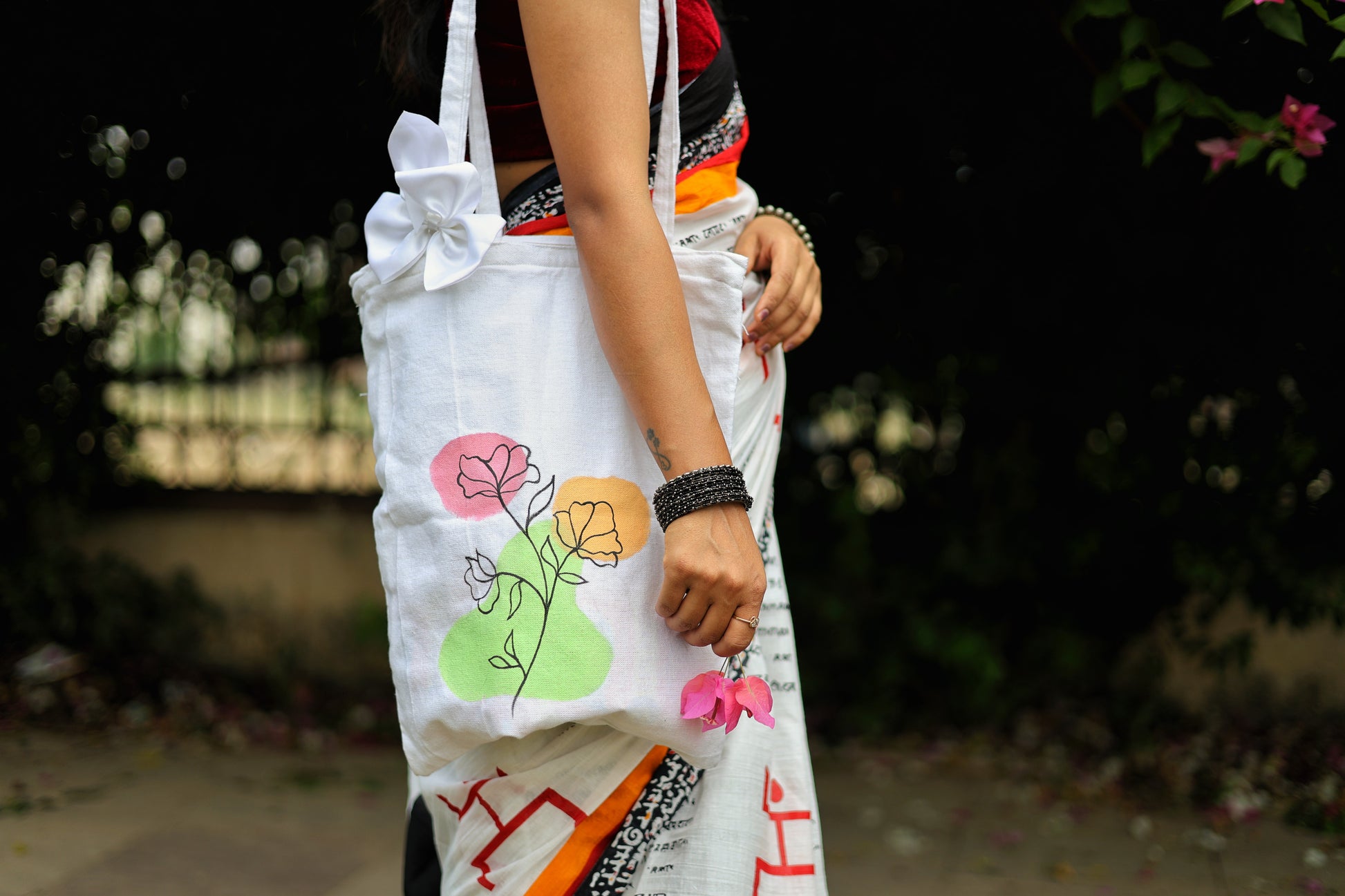 Banarasi Poshaak white hand painted floral zipped totes