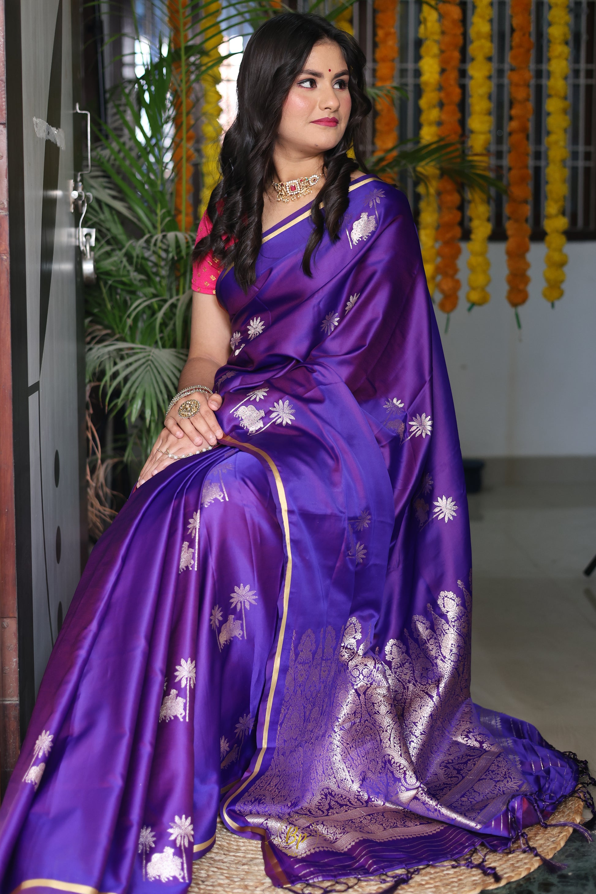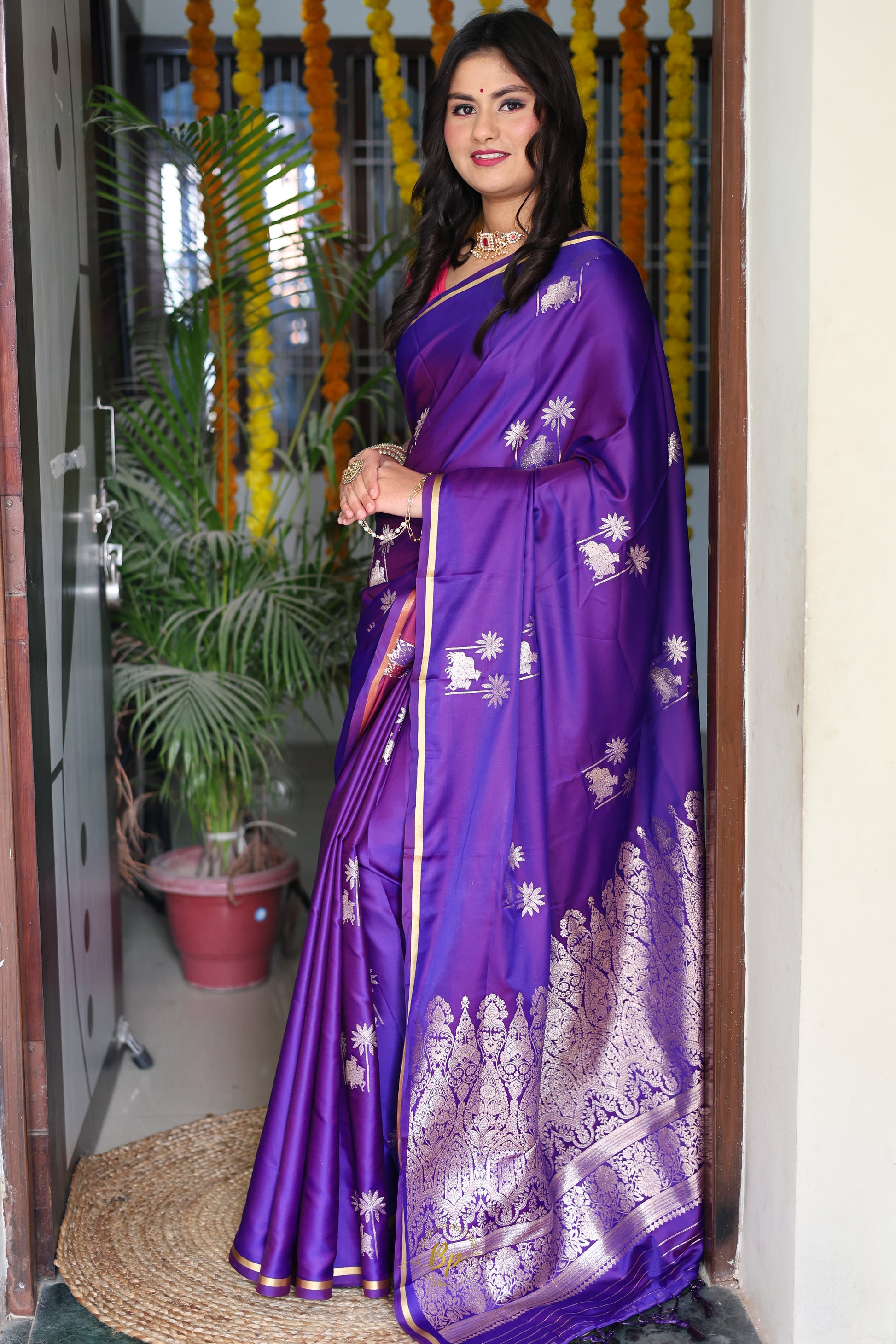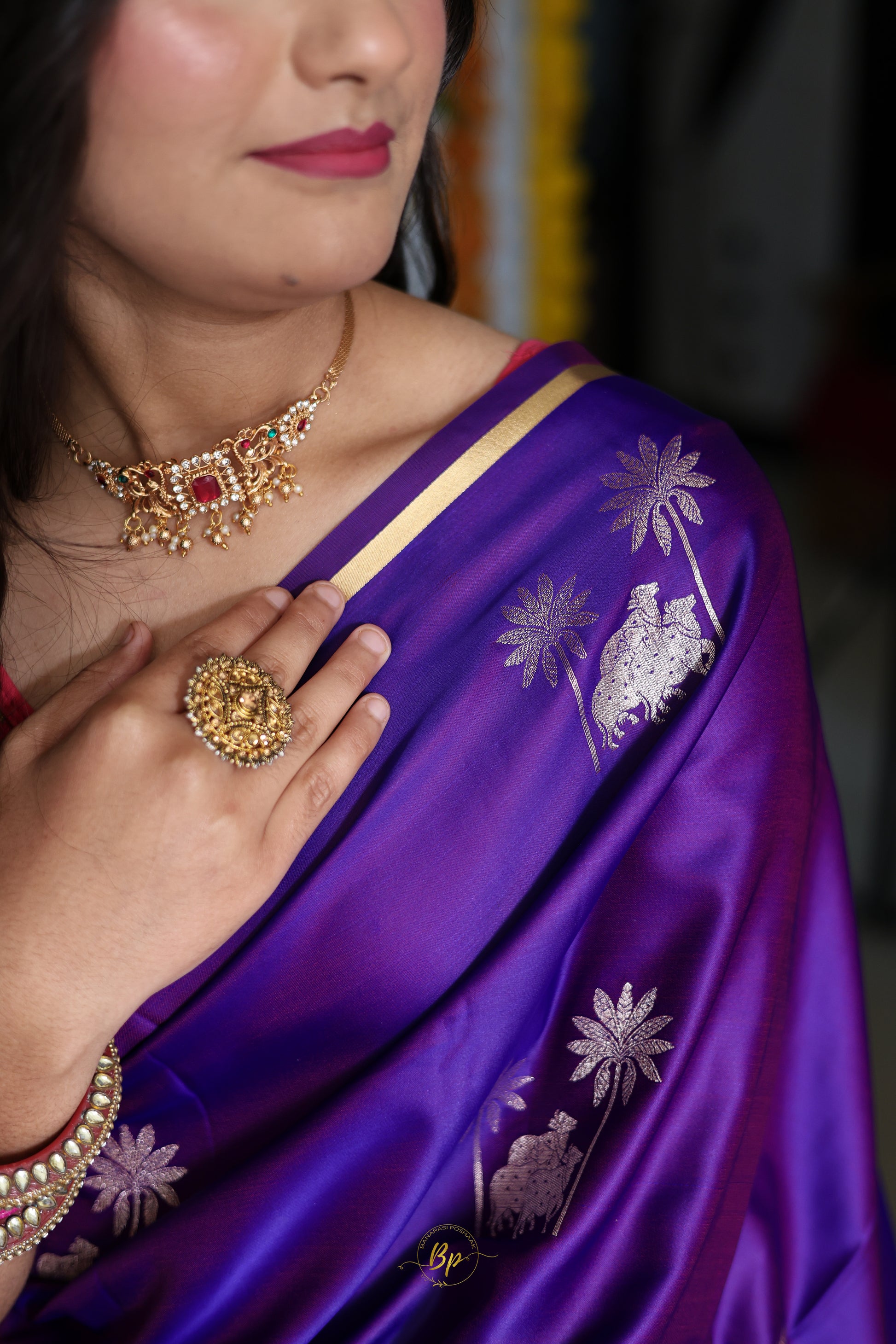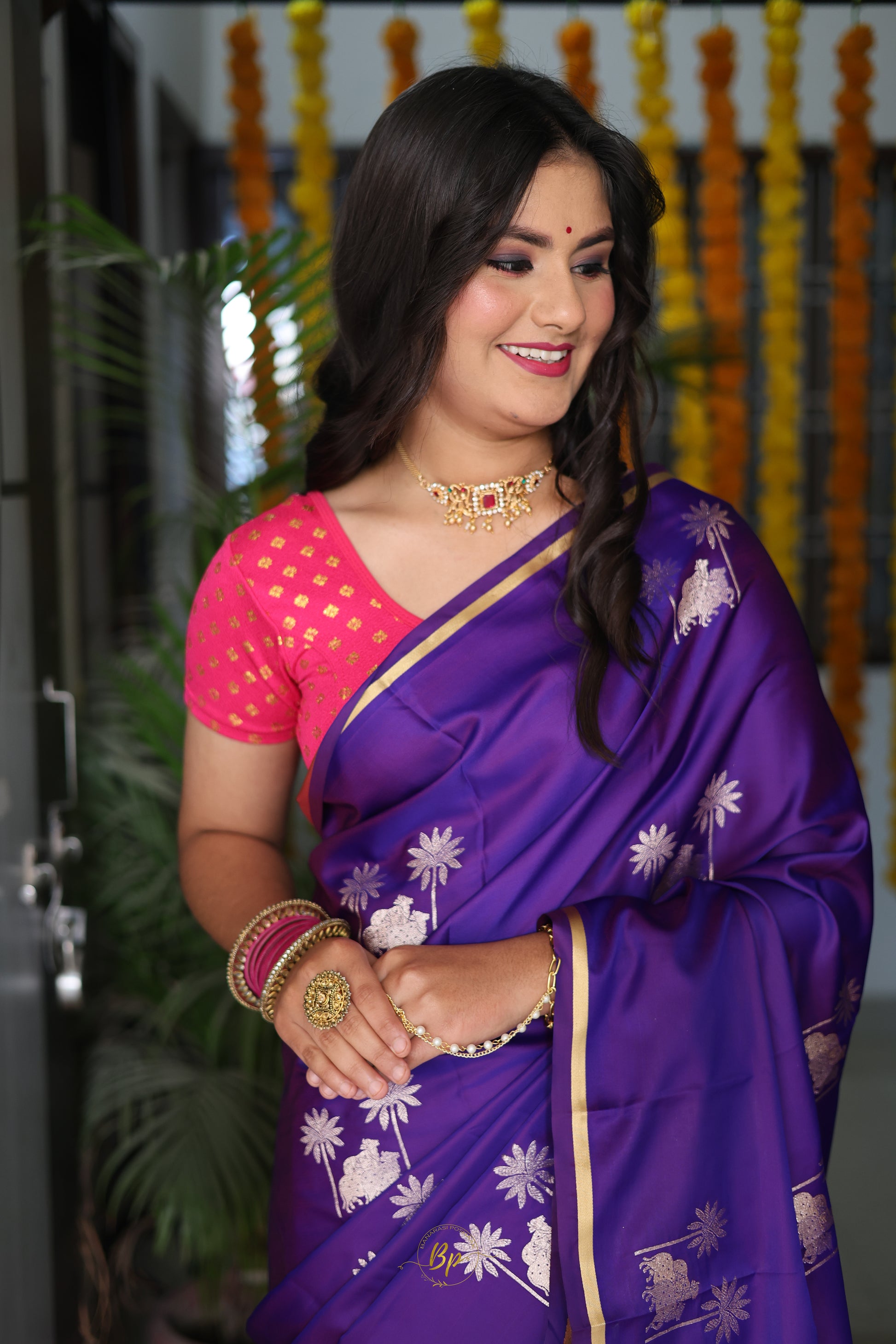 This beautiful pitchwai zari weaving on satin silk saree is must have to every women. This saree comes with unstiched brocade blouse.